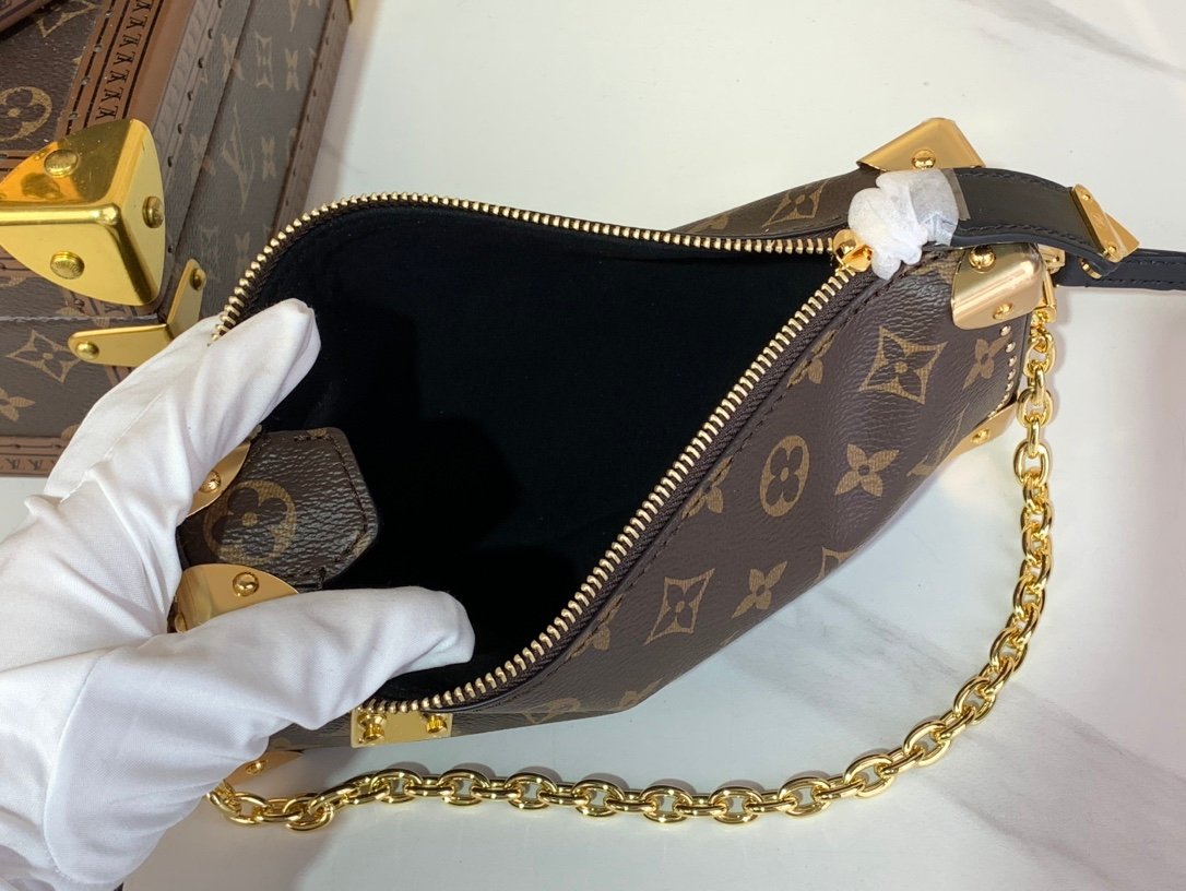 The Slim Trunk handbag elegantly appeared on the Cruise 2025 show, adding a new member to the classic Trunk handbag series. The Monogram canvas, Monogram Reverse canvas and smooth cowhide leather trim are cleverly combined to highlight Nicolas Ghesquière’s signature touch, and the S-lock buckle and metal rivets pay tribute to the long tradition of the Trunk series. Dimensions: 23 x 12 x 4 cm (length x height x width)